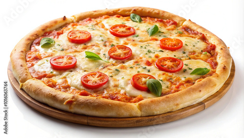pizza, italian cuisine, margherita, basil, tomatoes, cheese, food, dish, meal, epicure, baked goods, fast food, traditional, italy, delicious, savoury, homemade, culinary, dinner, lunch, vegetarian, classic, pizzeria, eatery, comfort food, appetising, vibrant, colourful, herb, simple, authentic, mediterranean, kitchen, receipe, food photography, white background, tomatoes, italian, mozzarella, baked, pepper, snack, fast