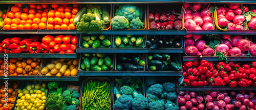 vegetable, fruit, supermarket, produce, fresh, market, grocery, healthy, food, organic, assortment, colourful, variety, nourishment, display, retail, shopping, store, green, red, yellow, orange, carrot, pepper, broccoli, courgette, lettuce, tomatoes, cabbage, garlic, aubergine, cucumber, orange, potato, cauliflower, leafy, greener, vibrant, arrangement, diet, health, lifestyle