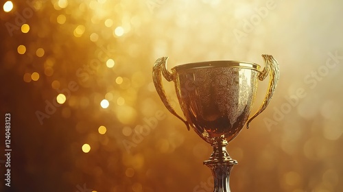 Golden Trophy Against Sparkling Background, Celebrating Achievement and Success with Radiant Elegance