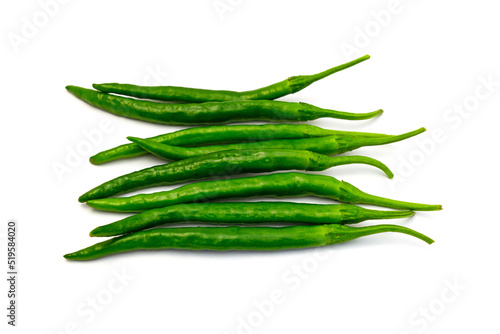 白背景の青唐辛子 コピースペースあり Green chili peppers (chile verde) on white background with copy space