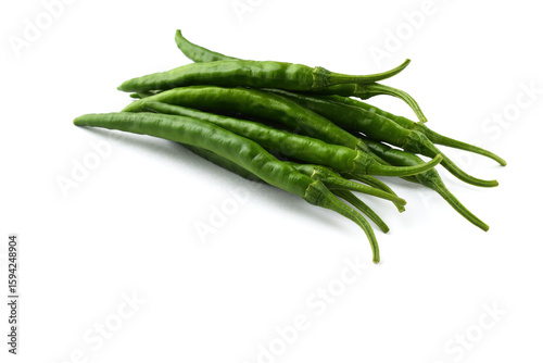 夏野菜 青唐辛子(青とうがらし, 青トウガラシ)白背景 コピースペースあり Green chili peppers (green pepper,chile verde) white background, copy space available
