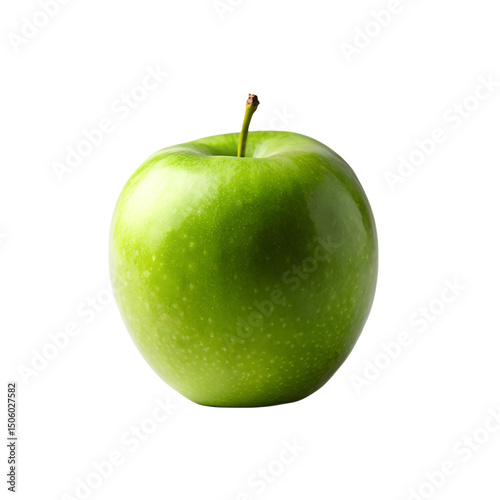 Green Granny Smith apple isolated on white background for food packaging, healthy lifestyle promotions, fruit product labels, grocery advertisements, and educational materials