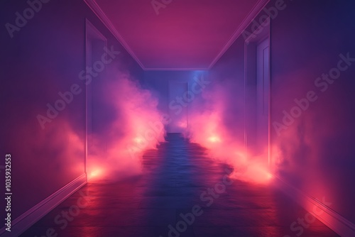 Hallway Filled with Pink Smoke.