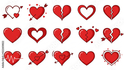 Heart-shaped vector icons. A compilation of love symbols displayed separately