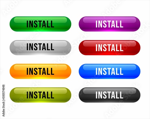 install button. sign. key. push button set sticker icons . in multicolors blue , red , yellow ,purple green in white background