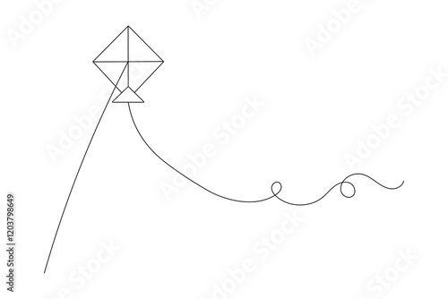 Kite continuous single line art and isolated outline vector design