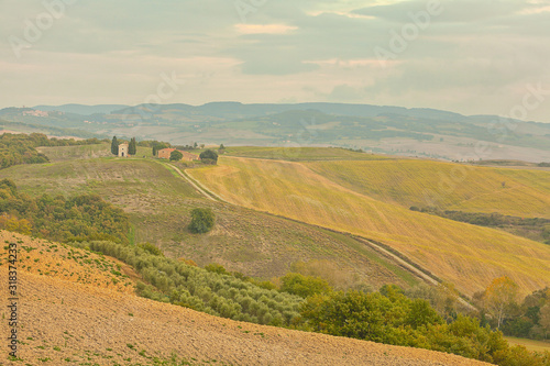 landscape of hills tuscany in autumn in Italy