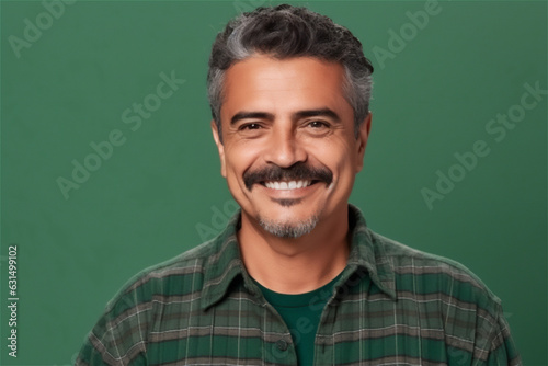 latin mid adult man smiling on a green background