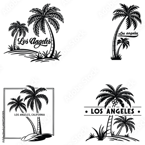 Los Angeles t-shirt design set black line art and illustrator eps 10 isolated on white background