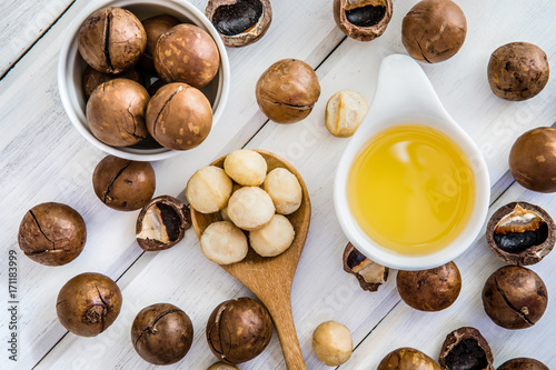 macadamia, oil, nut, white, natural, healthy, seed, wooden, food, raw, fresh, brown, glasses, organic, diet, meal, nourishment, ingredient, vegetarian, background, health, fruit, snack, fat, shell, cosmetic, cooking, protein, refined, essential oil, aromatic, top, up high, overhead