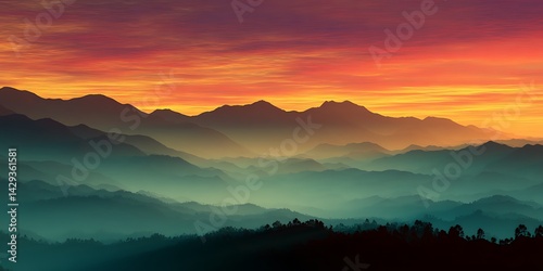 Majestic Mountain Range Silhouettes Under a Dramatic Pink and Orange Sky