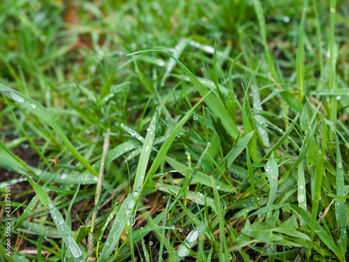 Natural background droplets on grass. High quality photo