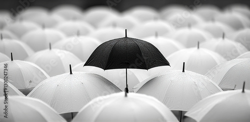 Paragua negro destacando entre paraguas blancos