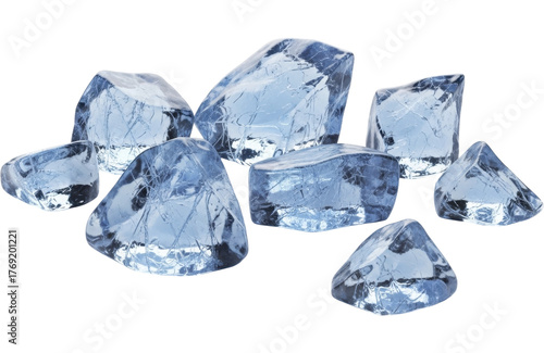 Pile of glistening clear ice cubes and irregular frozen pieces on a transparent background PNG image, cool blue tint, perfect for chilling beverages, refreshing frozen theme PNG file