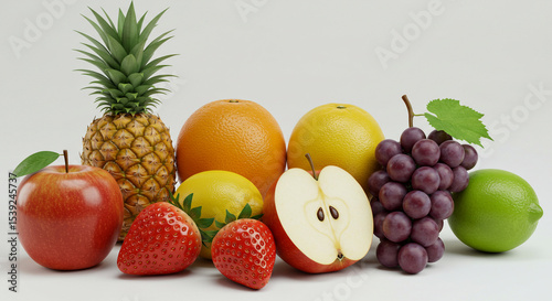 pineapple, orange, grape, apple, lemon, citrus fruit, natural light, wellness, white plate, fruit, food, fruit, fresh, isolated, healthy, grape, white, kiwi, apple, diet, red, citrous, banana, green, ripe, pear, banana, nature, vitamin