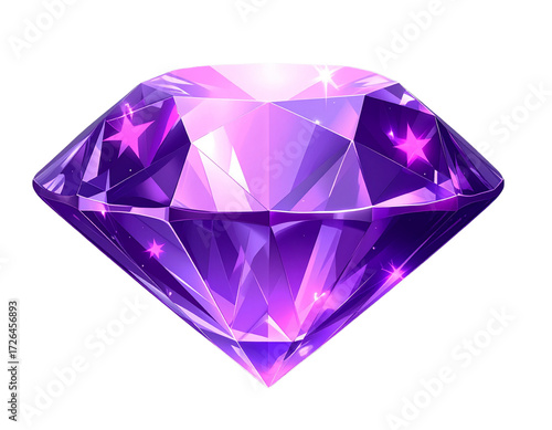 Purple Gemstone with Decorative Pink Stars, isolated on transparent background PNG