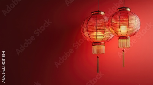 Red Chinese Lanterns on Red Background: Elegant and Traditional Decoration for Celebrations, Festivals, and Cultural Events