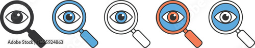 magnifying, glasses, eye, symbol, icon, search, inspect, view, zoom, look, investigation, magnifying glass, discover, inspection, vision, sharpened, graphic, colours, magnifier, canvasses, clarity, research, discovery, blue, black, orange, white, lens, magnify, explore, check, evaluate, exam, design