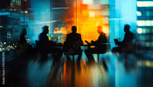 business, meeting, office, silhouette, modern, teamwork, corporate, professional, discussion, workspace, city, urban, glasses, light, evening, brainstorming, collaboration, strategy, contemporary, leadership, people, executive, boardroom, work, planning