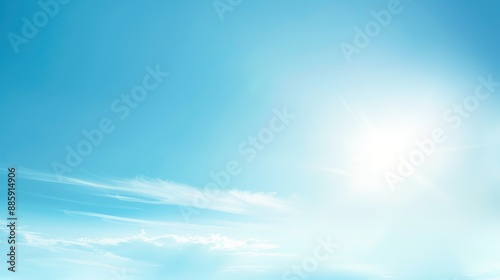 Soft Blue Abstract Background with Gentle Sunlight and Light Blue Sky Featuring White Clouds, Perfect for Design, Banner, or Wallpaper Templates