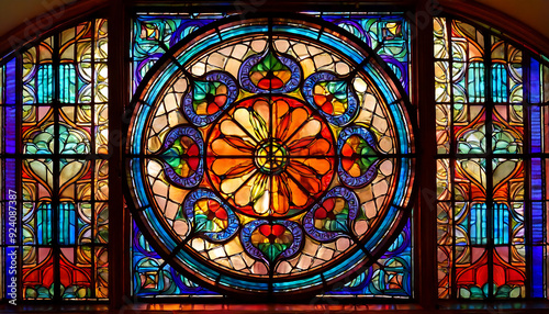 Stained Glass Window- A colorful and intricate stained glass window with abstract designs, _1(635)