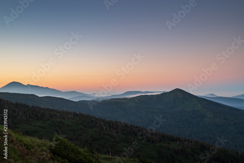 mountain, sunset, landscape, sky, nature, sunrise, mountain, fog, sun, blue, morning, cloud, hill, cloud, panorama, dawn, view, mist, beautiful, forest, travel, dusk, evening, sunlight, beauty, japan, japanese