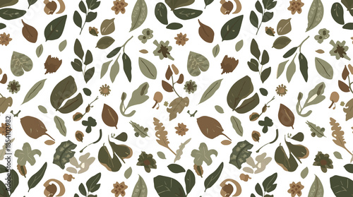 template featuring earthy organic motifs in a repeating pattern with a flat design aesthetic, incorporating natural elements such as leaves and flowers with png Transparent