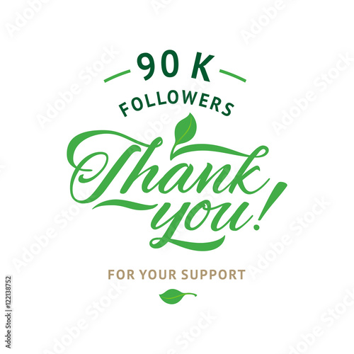 Thank you 90 000 followers card. Vector ecology design template for network friends and followers. Image for Social Networks. Web user celebrates a large number of subscribers or followers