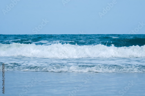 sea, ocean, beach, wave, water, wave, blue, sky, coast, surf, nature, sand, summer, shore, landscape, travel, foam, tropical, breaking, vacation, white, seascape, cloud, horizon