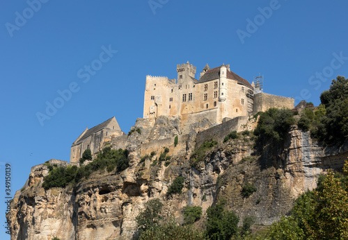 The medieval Chateau de Beynac rising on a limestone cliff above the Dordogne River. France, Dordogne department, Beynac-et-Cazenac