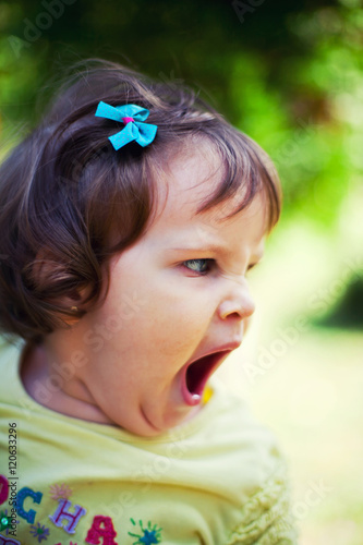Tired baby girl yawning