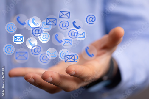 electronic mail, mail, message, communication, cyberspace, technology, send, online, business, letter, digital, network, screen, concept, icon, touch screen, modern, social, marketing, text, computer, media, receive, text message, web, symbol, inbox, pointing, pressing, businessman, click, people, man, human, hand, finger, signs