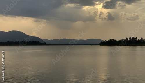 Tranquil lake under a dramatic sky