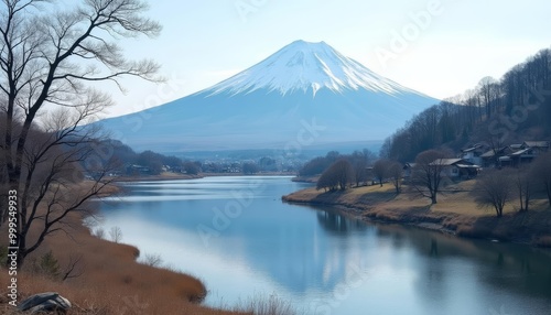 Tranquil waters with majestic mountain backdrop