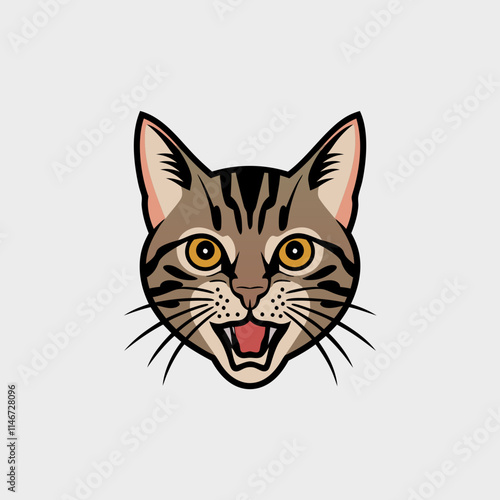 Vector Illustration of Happy Tabby Cat Head with Striped Fur and Expressive Yellow Eyes