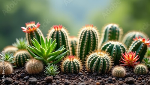 dirtied, outdoors, landscape, red, wild, flora, green, cactus, succulent, rock, desert, spiky, botany, plant, colourful, vibrant, nature, organic, garden
