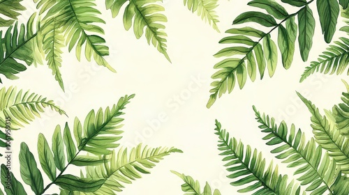 Watercolor illustration of green fern leaves forming a natural frame, suitable for backgrounds, nature themes, or botanical designs.