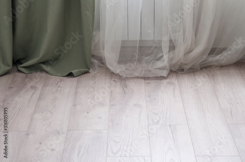 wooden floor, curtains and tulle