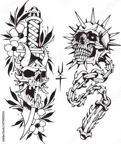 tattoo, vector, illustration, tribal, logotype, symbol, design, skull, black, signs, animal, dragon, decoration, art, head, emblem, lion, set, wolf, pattern, wild, bird, snake, biker, element