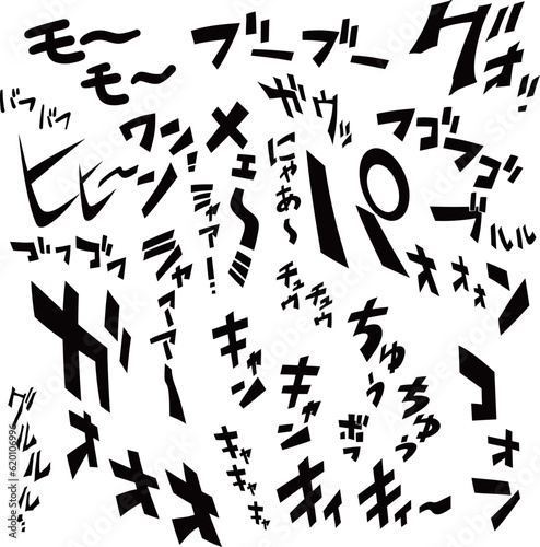 manga, cartoon, effect, tone, ink, font, handwriting, word, silhouette, design, ornament, graffiti, illustration, vector, pattern, line, japanese, black, white, animal, cry, art