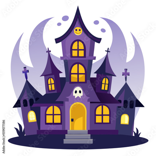castle, house, cartoon, vector, halloween, illustration, building, night, architecture, town, home, mediaeval, city, art, tower, princess, fantasy, fairy tale, design, old, fortress, village, moon, haunted, fairy