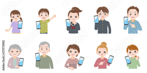 smartphone, smartphone, smile, smile, smile, people, family, set, sweet, global positioning system, saving, man, woman, woman, boy, girl, student, children, youth, adult, homemaker, aged, aged, elderly, grandfather, babushka, uncle, sister, 30s, 50's, 60's, flat