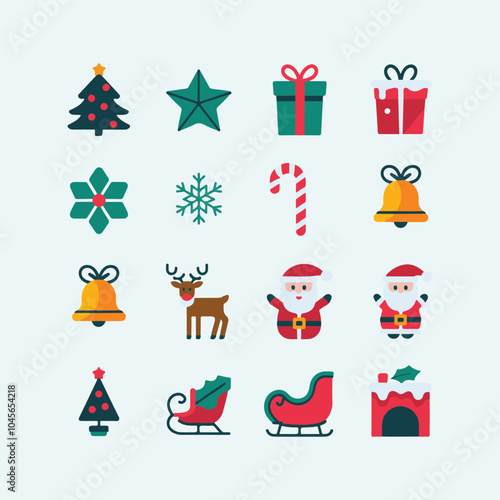 christmas, santa, vector, holiday, set, tree, christmas, gift, snowman, decoration, illustration, winter, icon, cartoon, celebration, icon, santa, new year, snowflake, claus, hat, design, pattern, snow, art