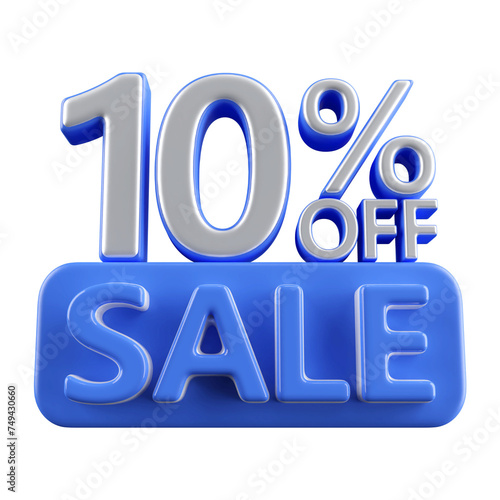 10 percent off sale discount number blue 3d render