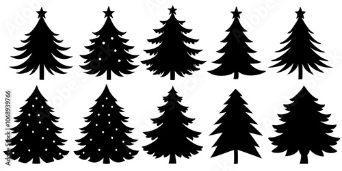 10 Silhouette Christmas Tree Vector, Silhouette Christmas Tree Vector, Christmas Tree Silhouette Vector