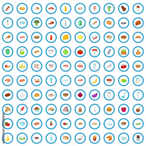 100 food and kitchen icons set in cartoon style for any design vector illustration