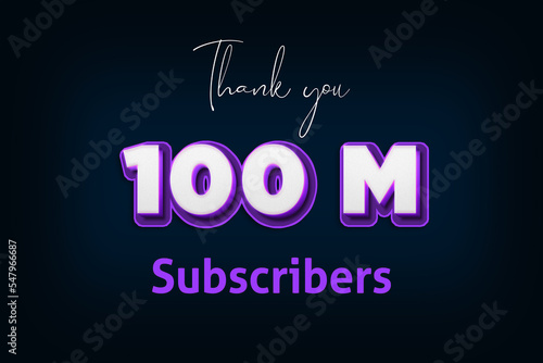 100 Million subscribers celebration greeting banner with Purple 3D Design