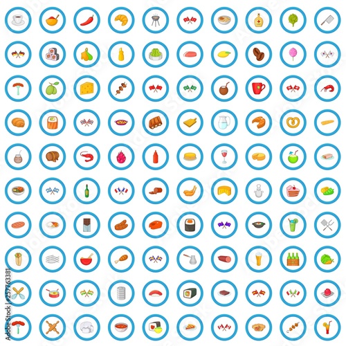 100 national cuisine icons set in cartoon style for any design vector illustration