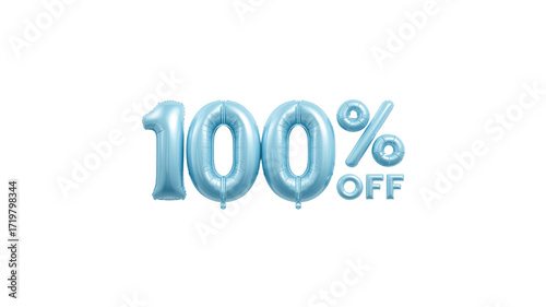 100, off, sale, discount, promotion, marketing, advertising, deal, offer, bargain, light blue, blue, balloon, celebration, festive, event, retail, shopping, commerce, business, percentage, percent, graphic, design element, background, texture, isolated, clipping path, vector, illustration, digital, online, web
