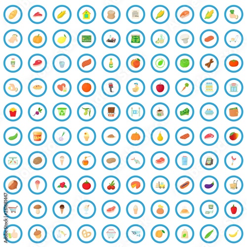 100 supermarket icons set in cartoon style for any design vector illustration